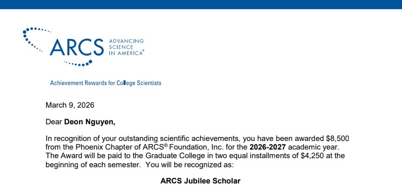 I won the Achievement Rewards for College Scientists (ARCS) Award for $8,500.